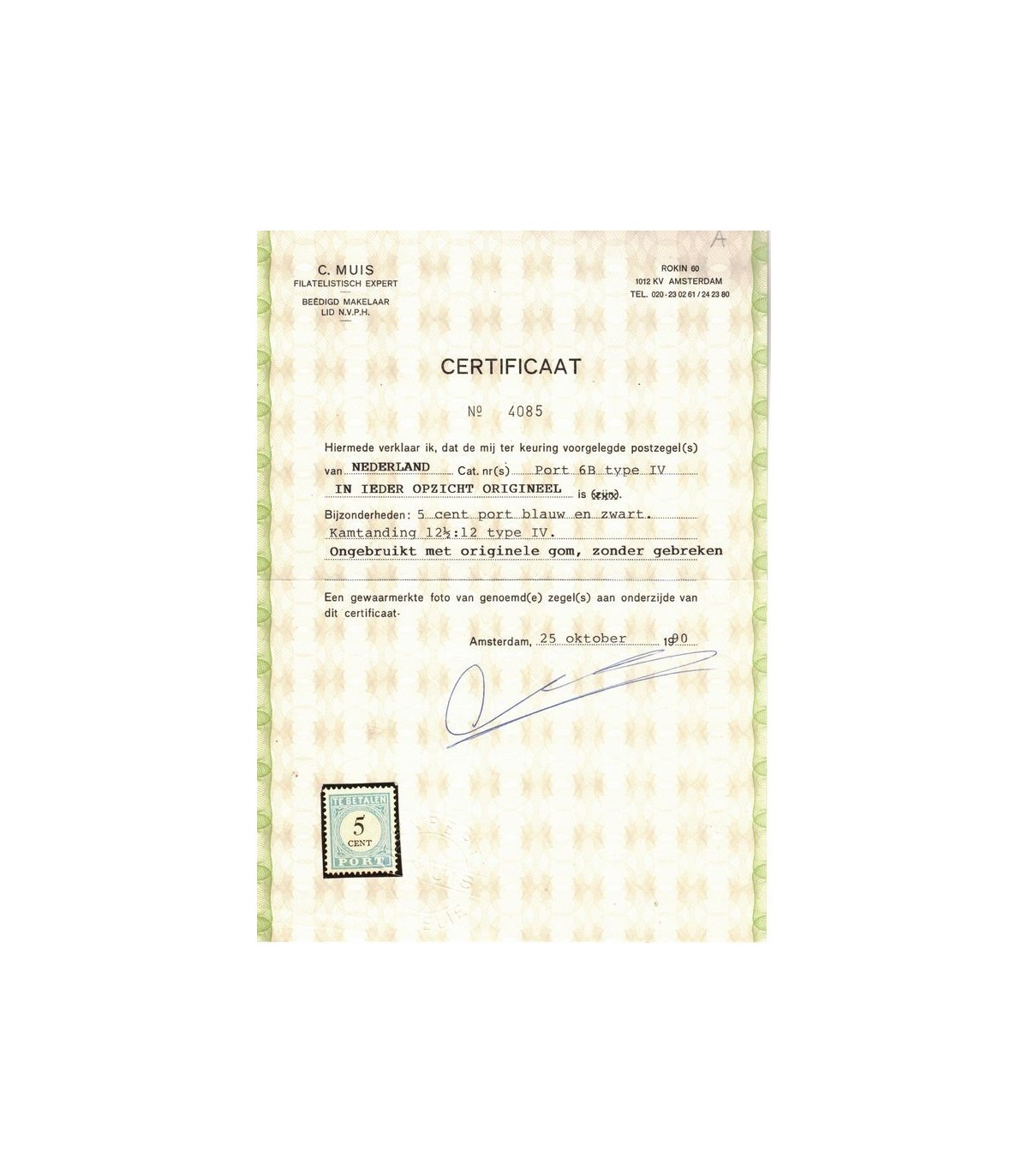 wordt geleverd inclusief certificaat, zeer schaars zegel